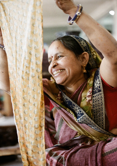 Our slow fashion garments support Indian women and preserve ancient textile methods. We follow a zero-waste design process, producing minimal quantities to avoid excess waste. Every purchase aids women empowerment projects in India and supports local communities in sustainable craftsmanship.